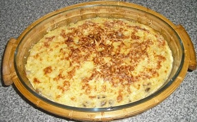9º. Espalhe uma camada de maionese sobre o bacalhau e leve a gratinar no forno até a superfície estar bem dourada>