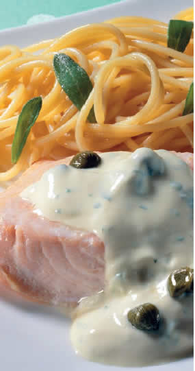 levando a fogo brando sem deixar ferver. Cubra os filetes de salmão com o molho e sirva.